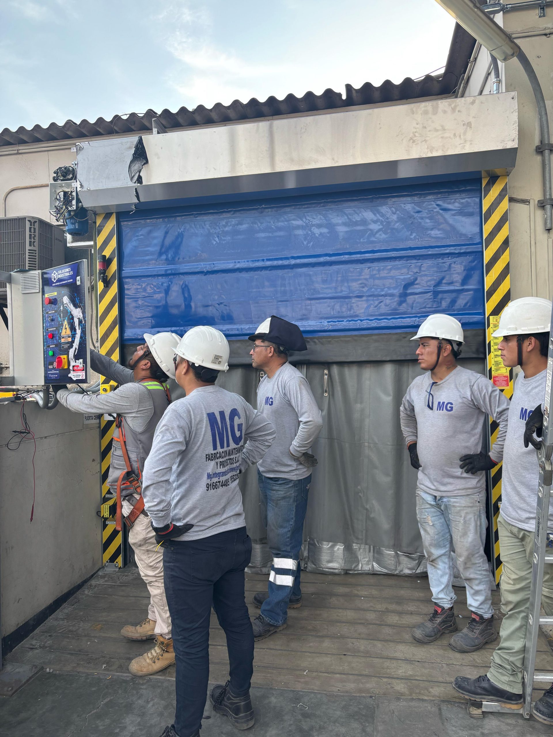 Puertas rápidas con PLC y sensores de alta seguridad industrial.